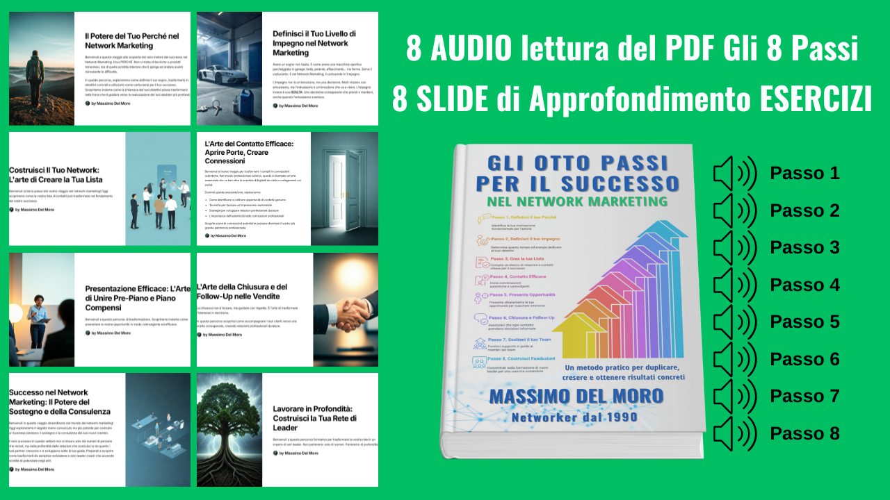 ✅ 8 SLIDE Una vera e propria guida step-by-step "SLIDE"per trasformare il PDF in risultati concreti.